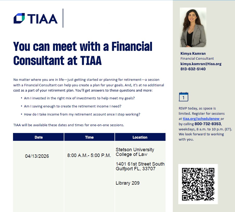 Schedule an appointment to meet with our TIAA rep on campus on April 13.