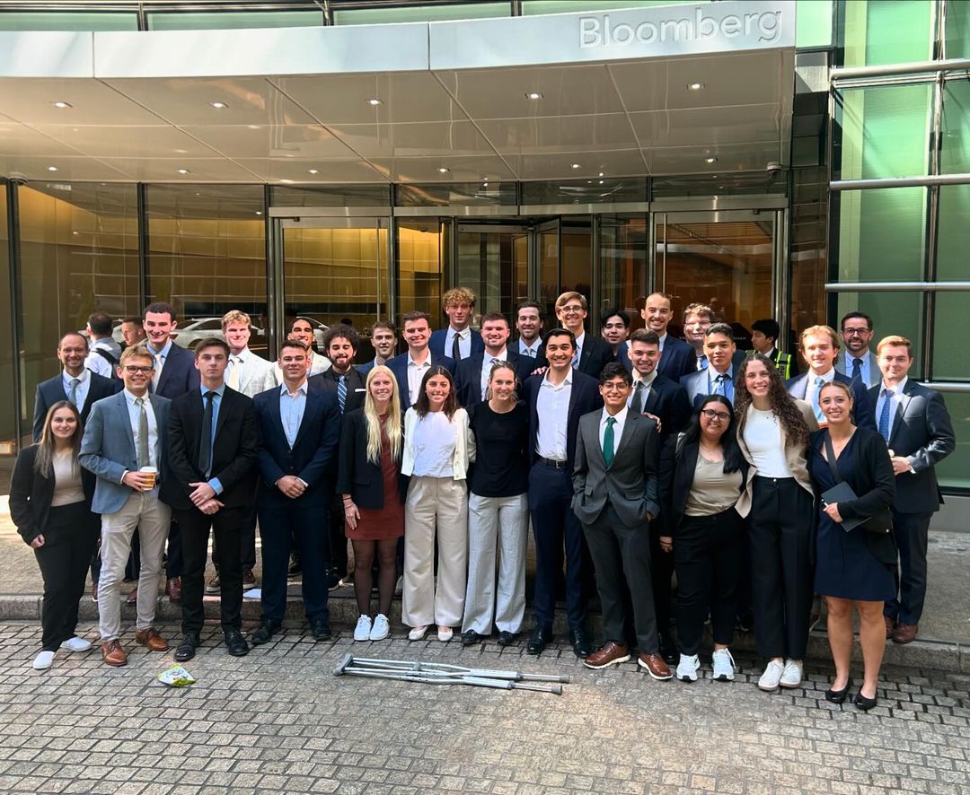 The trip featured 32 Stetson students: juniors, seniors, and MBA students. During this travel experience, these students visited firms such as BlackRock, Lazard, BNP Paribas, Milbank, Frederick Michael & Co, and Bloomberg. Our students had the opportunity to connect with fellow Stetson alumni in some of these firms, such as Luis Cortes at BlackRock, Blake Davies at Frederick, Jim Pascale at Milbank, and Nick Frost  at the Federal Reserve. Â
