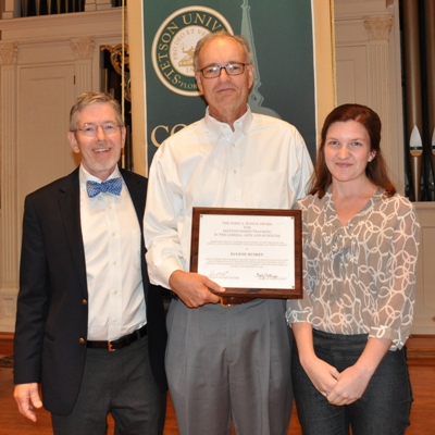 The 2012 John Hague Award for Distinguished Teaching – Eugene Huskey, professor of Political Science, was honored last week by the Stetson Chapter of Phi Beta Kappa with the John Hague Award Distinguished Teaching in the liberal arts & sciences. The Hague Award, named for the late Professor Emeritus of American Studies and former Honors Program Director John Hague, is presented annually to a faculty member in Stetson’s College of Arts & Sciences. Recipients are selected by students and faculty members of Stetson’s chapter of Phi Beta Kappa, the nation’s oldest and most prestigious academic honor society for the liberal arts and sciences. Read the full story about this year’s Hague Award.