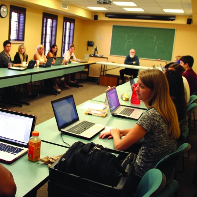 Professor Batey opens the discussion in the Law, Literature & Film seminar with a question about the assigned readings. In class, Professor Batey complements literary readings with films that explore similar concepts. “We read The Scarlet Letter and watch Dead Man Walking, or read Kafka and watch a documentary about the legal struggles of the film director Roman Polanski,” Professor Batey said.