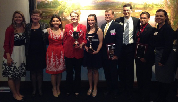 Each year, Florida Campus Compact (FL/CC) honors one institution of higher education as the Overall Engaged Campus of the Year, and one in each of three sectors, for advancing the public purposes of higher education, improving community life and educating students for civic and social responsibility. At the FL/CC awards gala held Nov. 8 in Tampa, Stetson University received the top Overall Award for the Most Engaged Campus in the state of Florida. In addition, a Stetson professor was awarded the Graham Frey Award for outstanding contributions to sustaining America’s participatory democracy; a recent Stetson graduate was recognized as an outstanding AmeriCorps member; and the university was also a finalist for the campus-community partnership award.