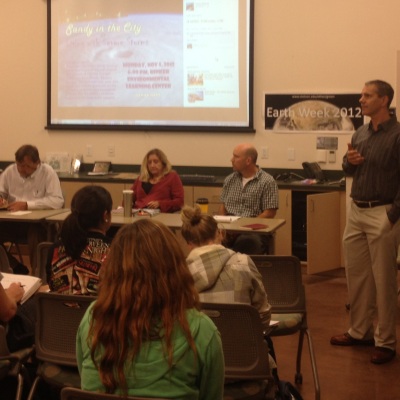 That same seriousness and sense of urgency were present in the Nov. 5 flash forum that Stetson University hosted for the university community and the public in Stetson’s Rinker Environmental Learning Center. The panel consisted of four professors in Stetson’s Department of Geography and Environmental Science, and one from the Political Science Department. Each gave his or her unique perspective about Hurricane Sandy and the broader topic of climate change. Topics, ranging from public policy, environmental law, biological diversity, and politics, were all part of a highly informative yet understandably bleak discussion about the future of climate change in the United States and the rest of the world.