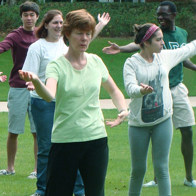 This year she picked tai chi as the activity for its attention to breathing, concentration, and slow, controlled movements. Students say that after tai chi they feel more alert and mentally prepared to study because they had to slow down and concentrate. The group was led by tai chi instructor, Deborah Branton who holds classes in Allen Hall every Tuesday and Thursday at 4:30 p.m.