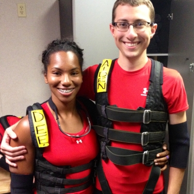 “It was truly amazing. We had a blast,” said Aiden Keller, an English major from Ohio. He and his girlfriend, Deonna Graham, also a Stetson student, were picked as contestants in “Fear Factor Live” and had to grab carnivorous eels, endure air cannons and blasting water, fire rocket launchers, throw squids and scramble around a car dangling high in the air.