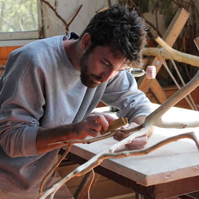 The Senior Art Exhibition by graduating senior Troy Norton, from Oviedo, Fla., pictured (left) sanding the tree branches of his art project, will be held Friday, April 26, from 6-9 p.m. in Conrad Warehouse, 113 W. Georgia Ave., in downtown DeLand. The exhibit is open to the public, free of charge.