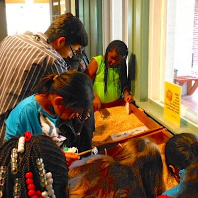 During their visit, the S.T.A.R.S. toured the museum’s mineral collection, participated in a geology lab to learn about the physical properties of minerals and competed in a native plant scavenger hunt on the museum’s grounds. In the culminating activity for the students, pictured to the left, Starke Elementary third grade teacher Alex Sanchez ’12, explains how to mine for minerals.