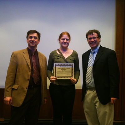 Katie Moore, holding certificate, a junior Stetson student in the College of Arts and Sciences, was accepted to present at this year’s Posters on the Hill conference. The conference, held each April in Washington, D.C., is hosted each year by the national Council on Undergraduate Research (CUR) on Capitol Hill. This event helps members of Congress understand the importance of undergraduate research by talking directly with the students whom these programs impact. The project that was accepted was Moore’s SURE (Stetson Undergraduate Research Experience) research project, entitled, “A Ubiquitous Non-Binding Fitness Application for Mobile Devices Using Body Sensors.”