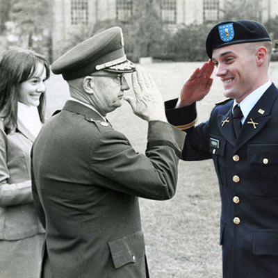 This year, Homecoming is scheduled during the same weekend as several Veterans’ Day celebrations, so several events are being planned to honor those Veterans’ in attendance, including a large turnout by our very own ROTC alumni. (In a photo where the old meets the new, recent Stetson graduate Walker Hobson ’11, receives his commission. Black & white photo credited to Stetson University Archives.)