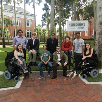 This concert will feature the original compositions of nine music students, with other students performing the works. (Pictured, left to right: Maggie Nicks, Justin Ward Weber, Erik Ferguson, Jeremy Umlauf, Anthony Virgilio, Matthew Bardin, Elijah Garland, Marcus Jones, Demi Nicks.) Stetson’s music composition program is under the direction of associate professor of music Manuel de Murga, Ph.D. The original pieces of music to be featured in Tuesday’s program include: