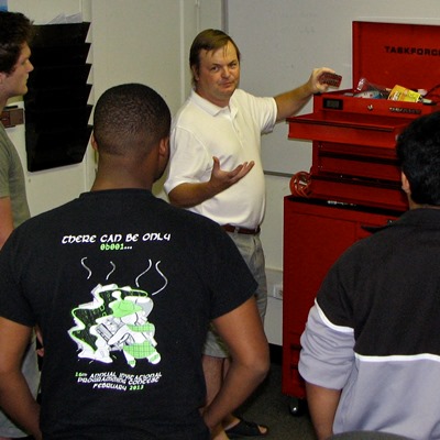 The seeds of Innovation House were sown by Dr. Thomas Schwarz, business dean, whose entrepreneurship initiative stirred Ball to volunteer his time and expertise to start a makerspace. Students were interested, but didn’t have tools and facilities.