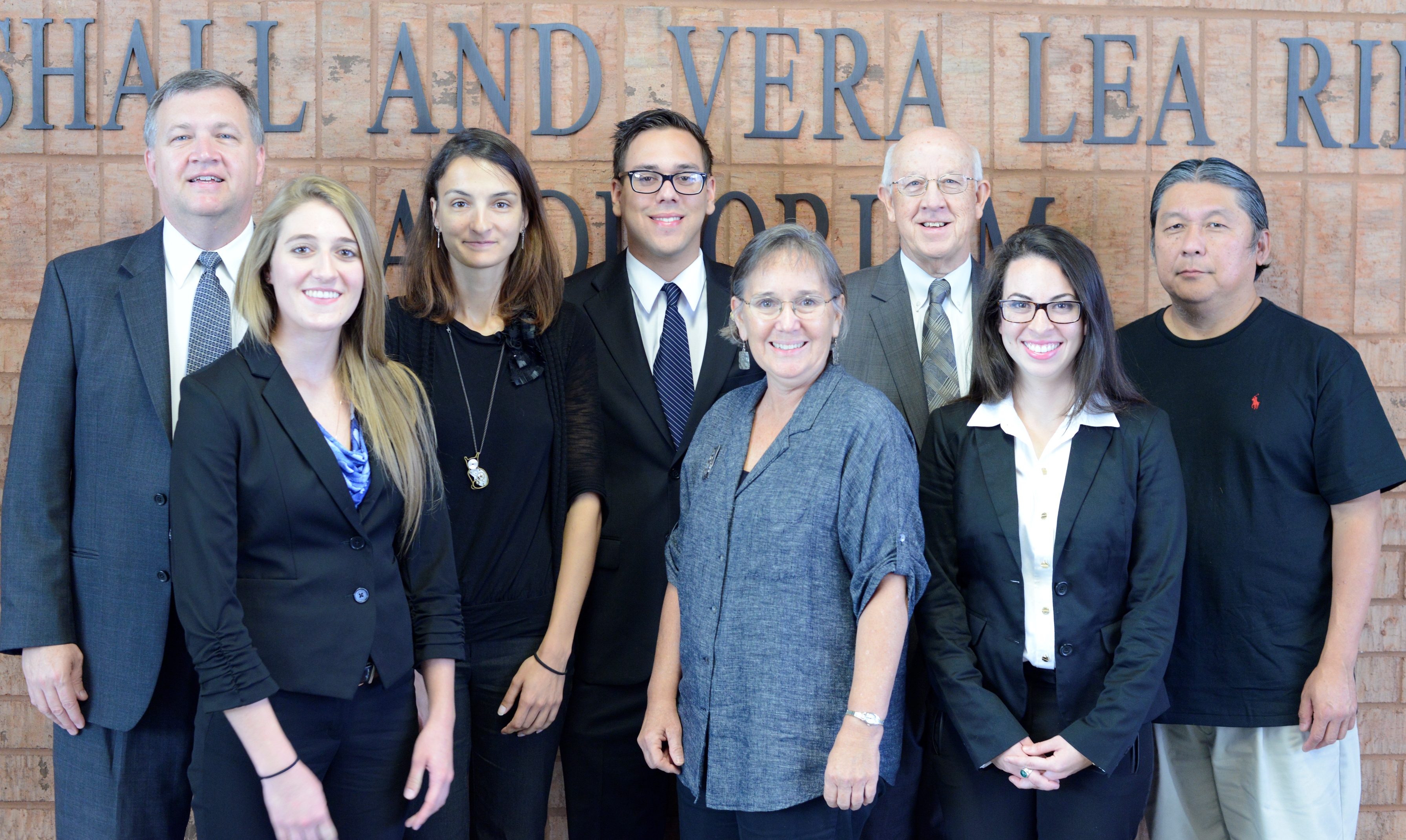 From left to right in the photo (above): professor John Tichenor, advisor to SOBE; Katie Kurtz, president of Stetson’s Student Organization for Business Ethics (SOBE) and competitor in the national competition; Dr. Jelena Petrovic, assistant professor of communication and media studies and judge in Stetson’s first annual Ethics Case Competition; Ken DeMoya, competitor in the national competition; Bobbi Baugh, local business owner and judge in Stetson’s first annual Ethics Case Competition; professor Jim Beasley, advisor to SOBE; Melissa Deloera, competitor in the national competition; and K.C. Ma, Ph.D., Roland George Chair of Applied Investments and director of Stetson’s George Investments Institute.