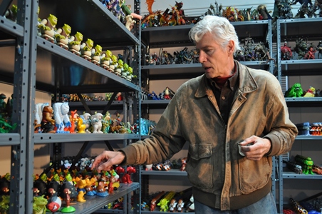 In the photo, right, Gunderson continues to save and categorize the many toy figures he has collected for this and other future projects.