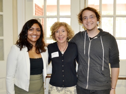 The Karen Schmitt Roberts Career Development Travel Fund, sponsored by Stetson’s Alumni Association Board of Directors, provides need-based travel scholarships for student interns. The scholarships will provide funds for all or part of a student’s travel expenses, or other aspects of an experiential education opportunity the committee deems appropriate, enabling the student to participate in an experience that might not otherwise be possible. This year’s recipients, Catherine Thuruthiyil, left, and Kevin Berstler, right, are pictured with Karen Schmitt Roberts ’80, center. They were recognized, along with Amy Umlah, a third recipient, during the Alumni Board meeting in late April: