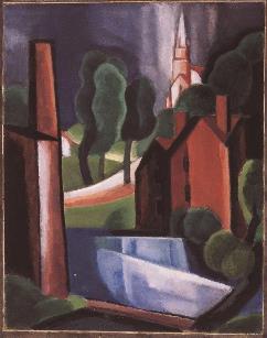 Oscar Bluemner’s painting, part of his New England Images series, featured left, is entitled Laconia, New Hampshire (1931).