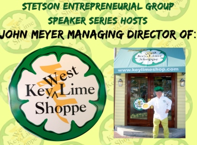 John Meyer, owner and managing director of Key West Lime Shoppe, will address the Stetson Entrepreneurial Group Wednesday, Oct. 15, at 9:15 p.m. The Stetson community and the public are invited to hear Meyers speak about his entrepreneurial experiences as a small business owner.