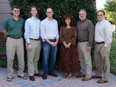 Of the program Oliphant noted, “The Coleman Fellows Program will enable the Prince Entrepreneurship Program to provide the focus and building blocks of establishing cross-disciplinary work between the Schools of Business and Music and the College of Arts and Sciences. This focus closely follows Stetson University’s Strategic Plan of interdisciplinary constellations of academic excellence. Stetson’s constellations represent interdisciplinary strengths and expertise to be focused, built and executed across disciplinary, methodological and social boundaries, thereby promoting collaboration across all disciplines.” (Pictured, left to right: Dan Plante, computer science; graduate assistant Brent Pafford; Nathan Wolek, digital arts and music technology; Patrece Robinson, Gary Oliphant, program coordinator of Prince Entrepreneurship Program; and Eric Kurlander, history.)