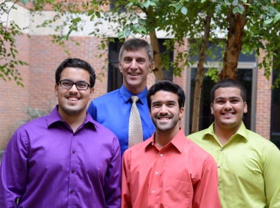 A legacy of three talented and prestigious brothers has been developing at Stetson University, ever since oldest brother, Brian Rodriguez ‘15, Music with Outside Field Business major, joined Stetson. Afterward, Brian’s two younger brothers also chose Stetson: Manuel (Manny) Rodriguez ‘16, Finance major and Vocal Music Minor, and Michael Rodriguez ‘17, Vocal Performance and Mathematics major. All three brothers are tenors and active in Stetson’s School of Music. (Pictured left to right, with Dr. Craig Maddox in the back: Manny, Brian and Michael.)
