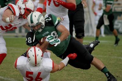 It looked as if the Hatters would have momentum from the very start of the game. Stetson took the opening kickoff and needed just six plays, five of which were runs by Cole Mazza, to march 65 yards for an opening score. To add a twist, Stetson faked the PAT and kicker Grant Amick plowed over defensive back Craig Thompson for the conversion to give the Hatters an 8-0 lead.