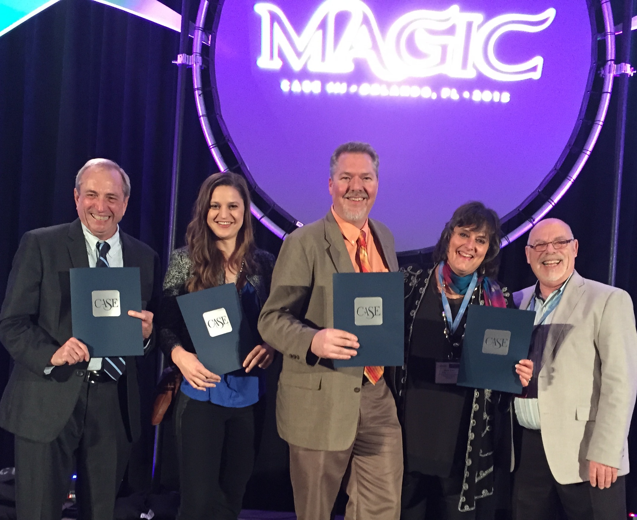 The annual CASE III awards honor and recognize outstanding programs and individuals. CASE District III is the second-largest district with more than 3,500 members. (Pictured, left to right: Bill Noblitt, Heather Graves, Joel Jones, Mary Anne Rogers, Greg Carroll. Photo by Woody O’Cain.)
