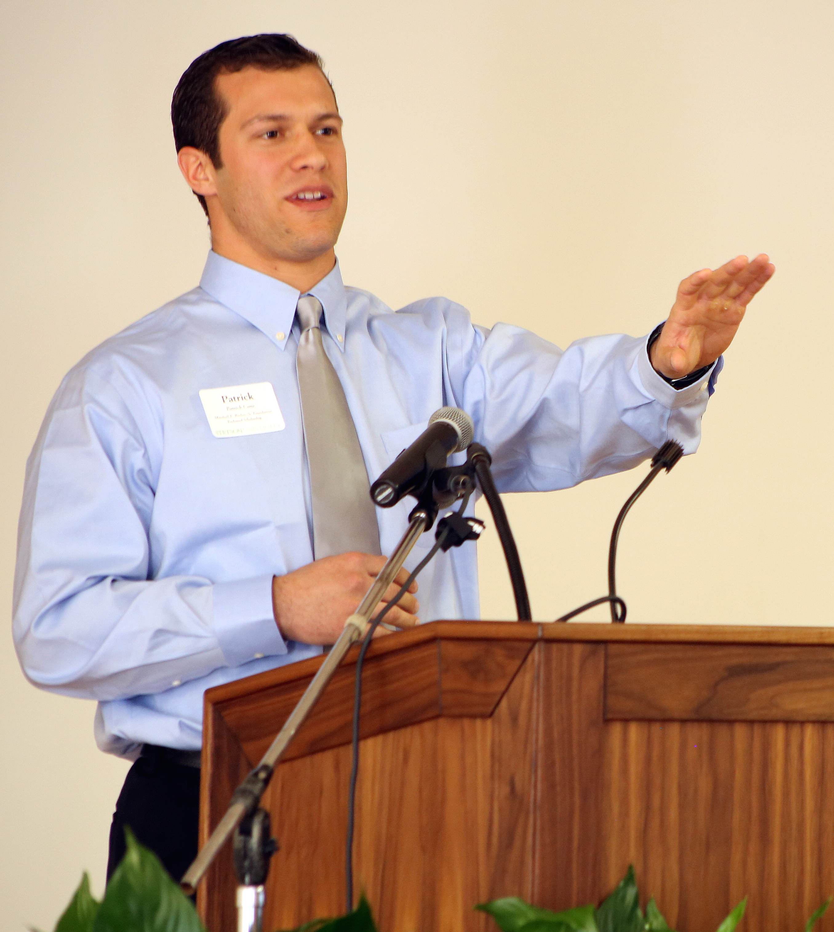 “What [scholarship benefactors] are doing goes beyond bestowing upon us the honor of attending Stetson,” said Patrick Cone ’15, expressing his gratitude as a recipient of the Marshall E. Rinker, Sr. Foundation Endowed Scholarship. Cone spoke about his strong connection to Stetson faculty, how he has dared to be significant, and how his experiences at Stetson have enhanced his leadership skills.