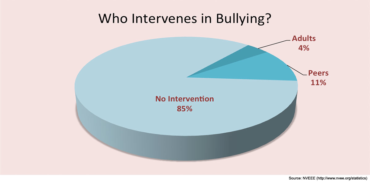 In the next seven minutes, a child in the United States will be bullied. It may be the son or daughter of someone you know. It may be someone close to you. Meanwhile, only four out of 100 adults will step in to stop it. And only 11 percent of the child’s peers might do the same. The rest — 85 percent — will do nothing.