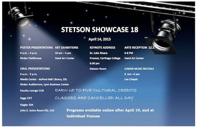 SHOWCASE 2015 to celebrate Stetson Undergraduate Research, April 14