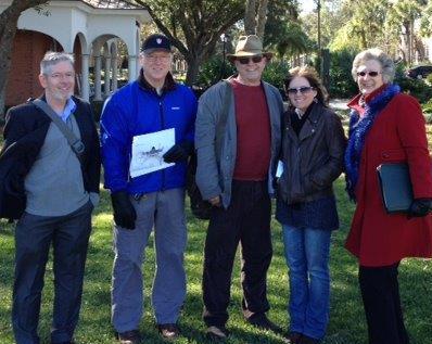 Since being announced last August, plans for the site have moved forward quickly under the leadership of alumnus Jay Mechling ’67, Ph.D. (Mechling, center, is pictured along with the other members of the planning committee: (l to r) Grady Ballenger, Richard Swartz ’68, Sue Ryan and Kate Pearce.) With the blessing of President Libby, a group of administrators, faculty, staff and alumni have selected a pleasant and readily accessible outdoor site that will encourage meditation on national service during a time of war that tested our campus and America.