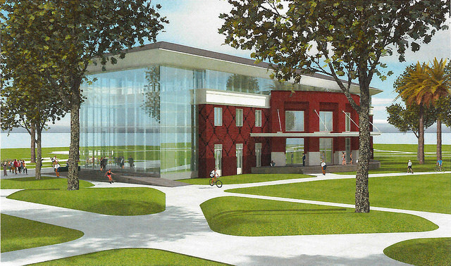 For example, by opting for a three-story structure instead of two stories, less land is consumed. The metal roof won’t require replacement for 50 years, and the materials can be recycled. The brick-clad building “celebrates and complements” its historic setting, and brick by nature is low maintenance. An extensive use of glass reduces the need for artificial light, while the LED light fixtures used throughout the center conserve energy. Moreover, the flooring is being manufactured from recycled carpet. The parking lot will employ solar light and be made of concrete, not asphalt — concrete generates less heat. Underwater storm chambers will capture rainwater, which eventually will filter down into the aquifer.