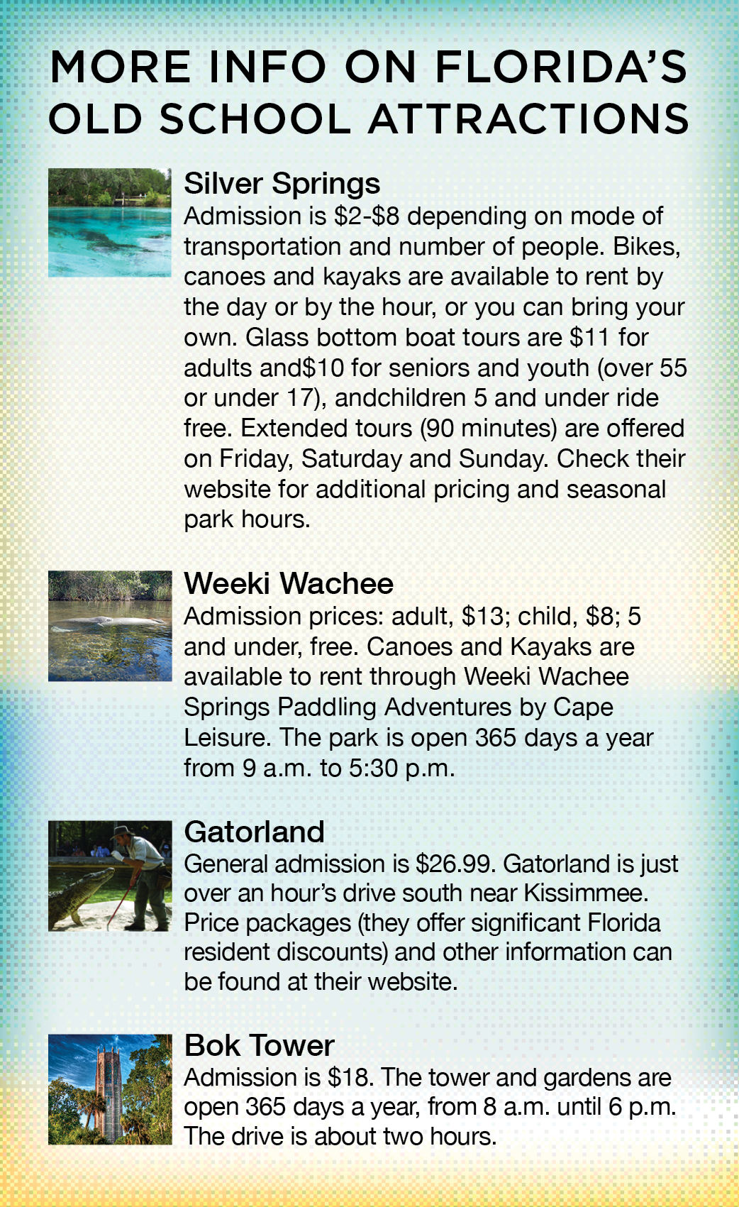 Long before Disney World, there were already plenty of entrepreneurs trying to lure tourists to the Sunshine State. In those early days, instead of chopping down trees and paving over everything, the idea was to take the abundant beauty of Florida and draw attention to it and make it available for visitors. Some of those old-school attractions still exist today, and make great excursions at a much lower price.