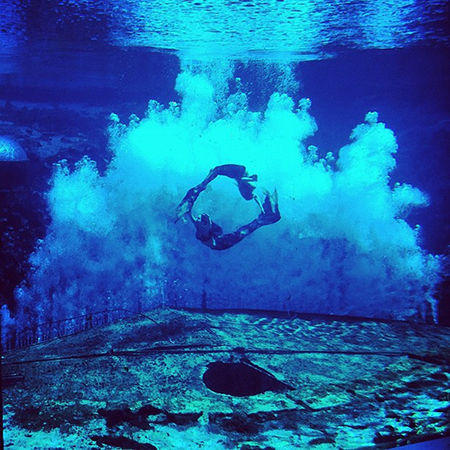 He built a theater right into the limestone six feet below the banks of the spring, with glass walls looking out directly into the depths. Next he began asking women if they’d like to be mermaids. Lots did. He taught them to use the air hoses, drink Grapette and eat bananas underwater. He choreographed aquatic ballets for the them to perform.