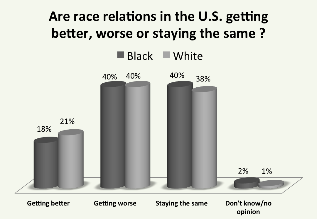 How far has our society come in matters of race relations? A New York Times/CBS News Poll put it starkly: not very far. The late July 2015 poll reveals that nearly six in 10 Americans, including heavy majorities of both whites and blacks, think race relations are generally bad, and that nearly four in 10 think the situation is getting worse.