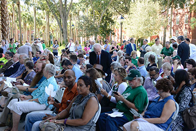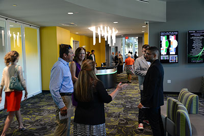 The three-story brick and glass Welcome Center celebrated its grand opening Saturday, attracting a crowd to tour offices that include Admissions and Enrollment Management, a “one-stop” service area with the Registrar, Bursar and Financial Planning, meeting rooms, and Career and Professional Development for current students and alumni.