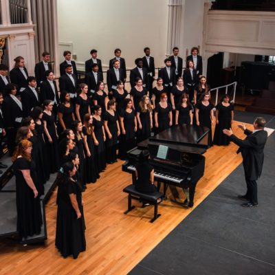 This year, the theme is “Arise,” meant to uplift and build community together. “This is a chance to think about rise, to look up and forward,” Peter explained. “… . I think we’re at a point where all voices and all people should be able to come together and rise in unity for a musical event. Honestly, a highpoint each year is hearing the room swell with all audience members and Stetson students singing and playing together on some of our most cherished Christmas carols.”