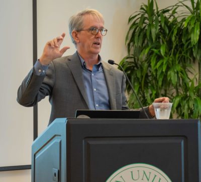 As Hill explained to the large group of students, faculty and staff packed into the CUB’s Warren and Barbara Carr Stetson Room, the goal was to “make our values applicable to all community members and reflective of collective commitments.” He described the revised values as a “fresh articulation,” one that reflects post-COVID Stetson in today’s world under President Christopher F. Roellke, PhD.