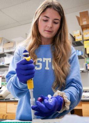 “I saw the different classes that were offered in the biology department, and the lab course molecular biology and biotechnology really interested me — like how everything functions at the molecular level. It just fascinated me,” said Astigarraga, now a Molecular and Cellular Biology major who is on a full tennis scholarship.