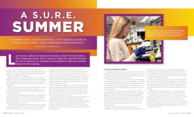 The undergraduate scholars are selected through a universitywide competition, with the program providing a $2,000 grant for research initiated over the summer session, which began last May. In addition, S.U.R.E. grant recipients receive up to $500 to support travel to an appropriate professional meeting to present research results.
