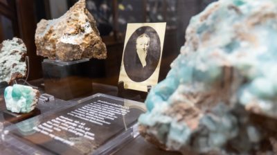 There is a sample of azurite on malachite – treasured as one of the finest and most popular in the museum’s collection, acquired in 1937 by T.B and Nellie Gillespie. It hasn’t been displayed in many years, but it is now.