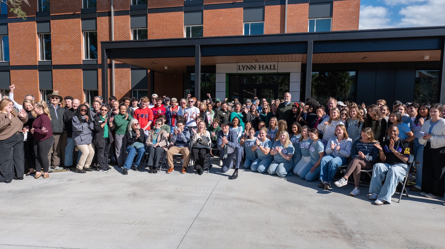 On campus this blustery day — Jan. 15, 2026 — Stetson beamed with sunshine in the form of its new Lynn Hall. In the early afternoon, the 305-room residence hall, the first built by the university in 20 years, was dedicated in a ribbon-cutting ceremony that literally brought chills, including the good kind.